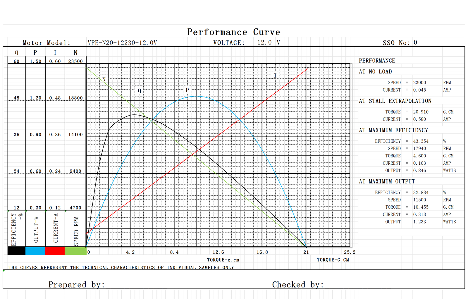 Model No. Nominal Voltage No load Max Efficiency Stall