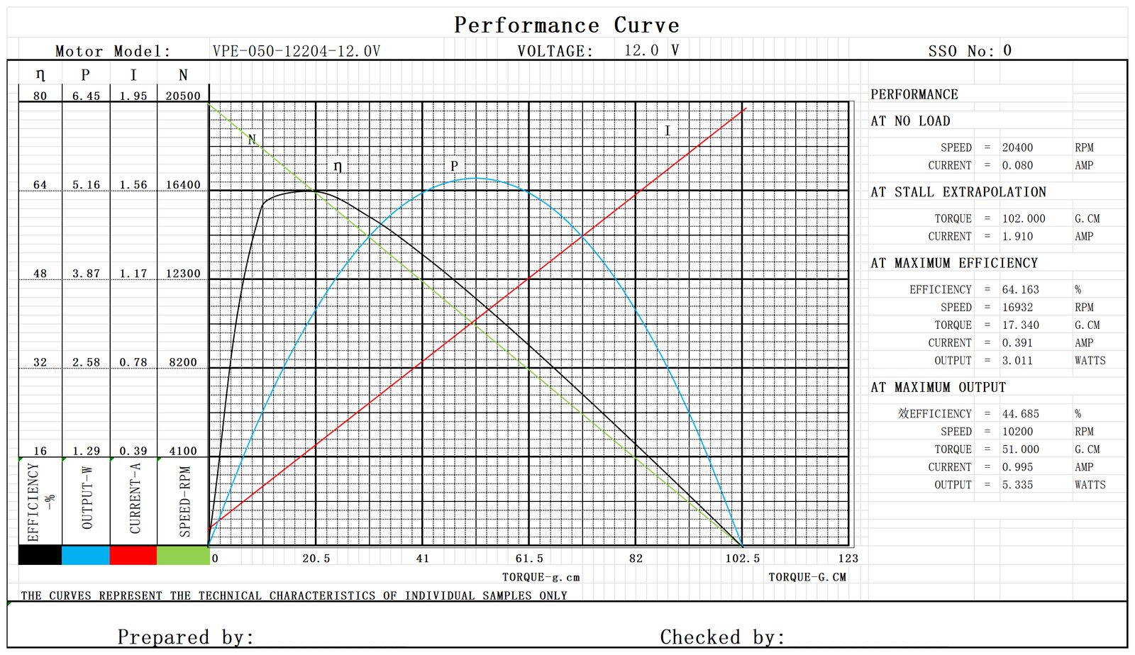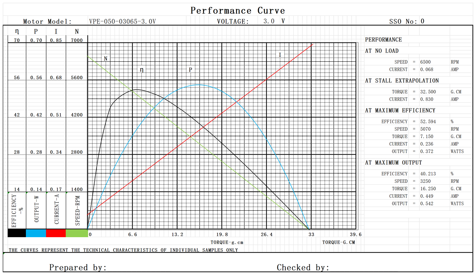 | Model No. | Nominal Voltage | No load | Max Efficiency | Stall | |||||